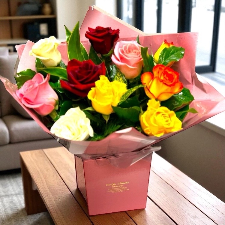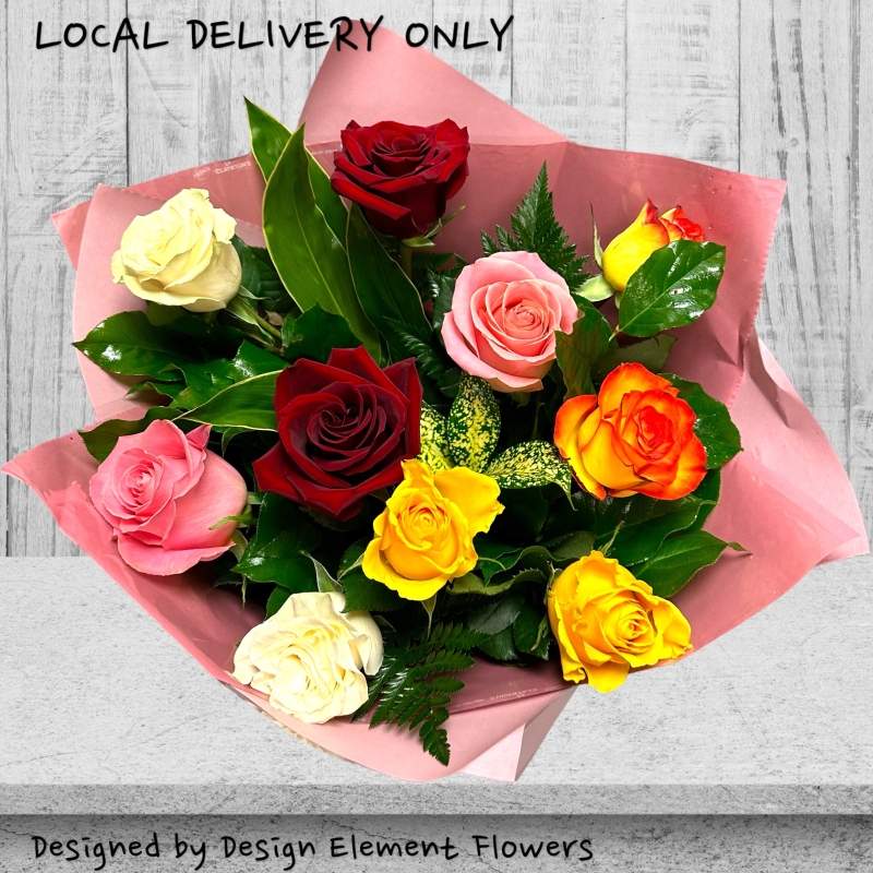 LOCAL Autumn Mixed 10 Rose Hand tied Bouquet