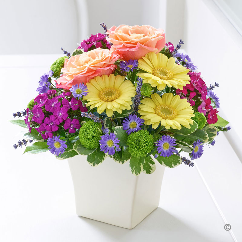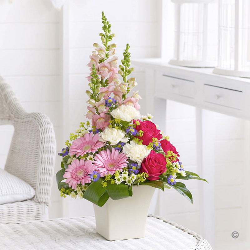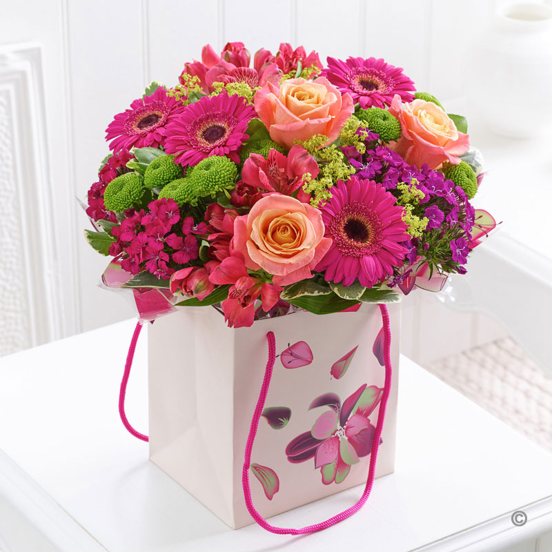 Design Element Flowers Summer Collections have the of Colours to combine and create a coctail of vivd tones and fluctuating shades. Hot Pink, Sweet Coral, Golden Yellows and tangy Green add vitality to our Summer Floral Collection. We have a vast range of Summer Handtieds, Summer Arrangements , Summer Vases of Mixed Flowersand stunning Summer Basket Arrangements to bring that summer sunshine into the home. We that you enjoy our wonderful collection of summer flowers we have used in this collection.