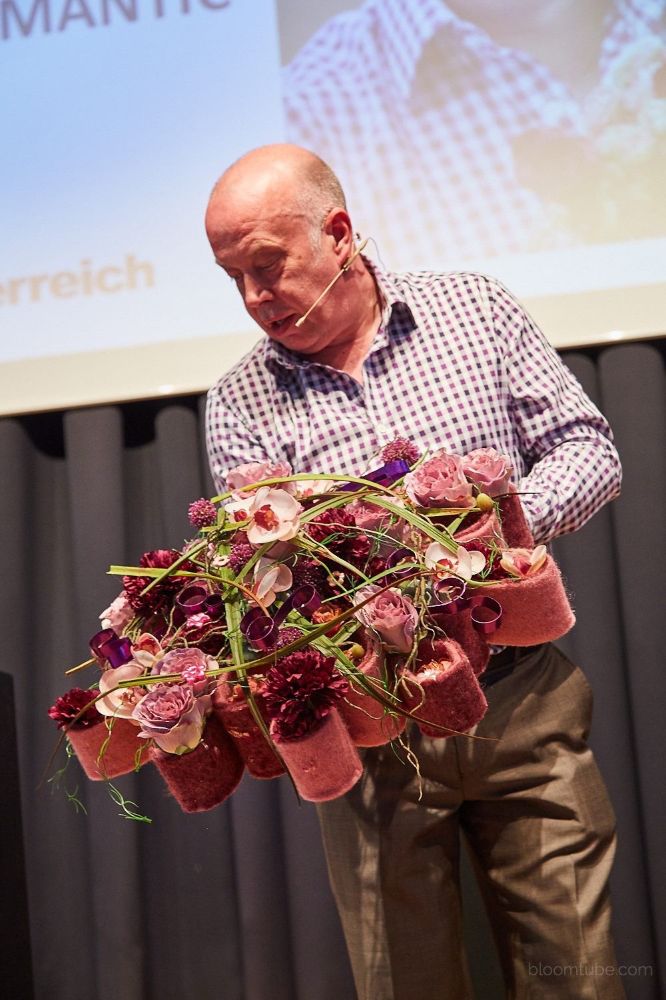 Neil Whittaker from Design Element Flowers was invited to Austria to demonstrate trands for 2016 this included Christmas 2016 and the Romantic rnage for 2016 for Lenher Wolle3 in Austria .